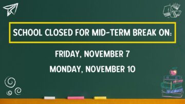 School will be closed on Friday, November 7 and Monday, November 10 for our Mid-Term...