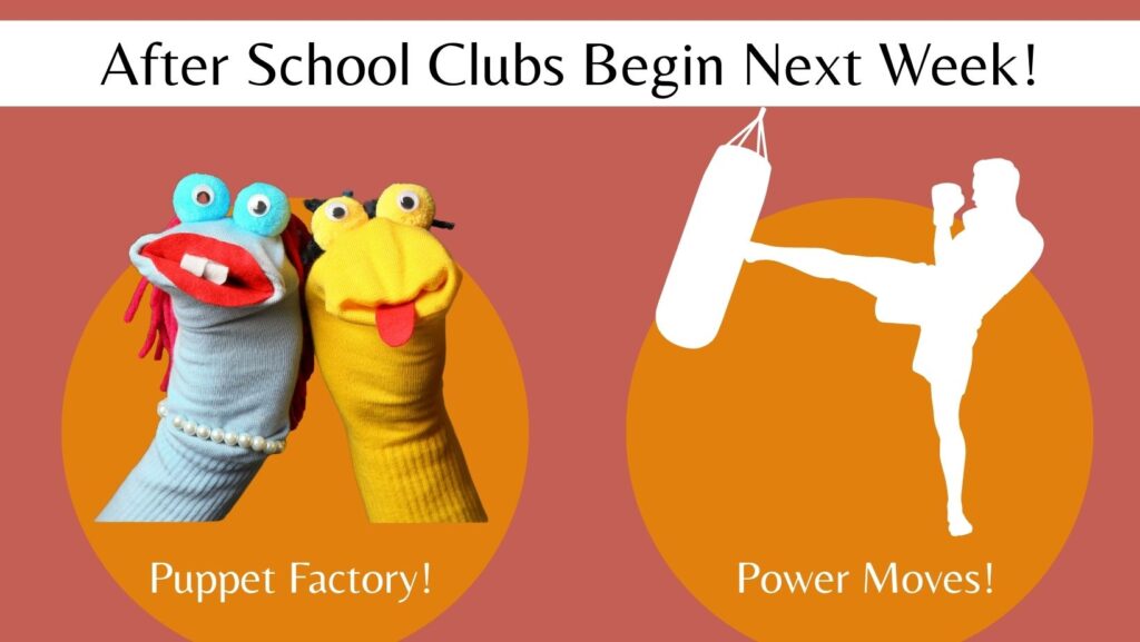 We’ve got some great after school clubs lined up this Term 2! Elementary After School Clubs Puppet Factory – Wednesdays from 3:30-4:30pm Secondary After School Clubs Power Moves (kickboxing) – Tuesdays from 3:30-4:30pm