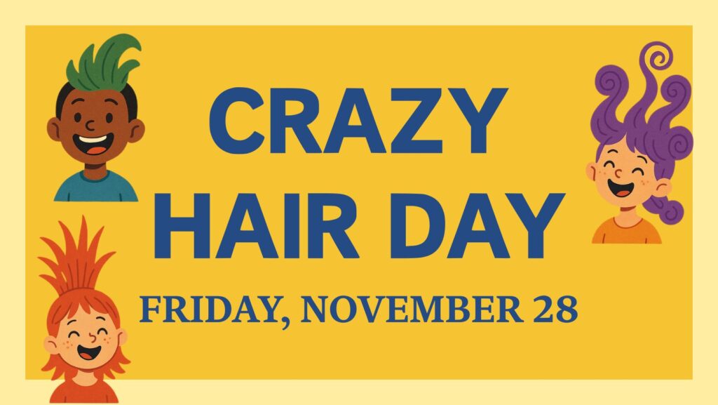 Friday, November 28 is a casual day! Students can ditch the uniform and show us their awesome hair creations this Friday for our Crazy Hair Day! Let’s see messy, funky, arty! The wackier the better!