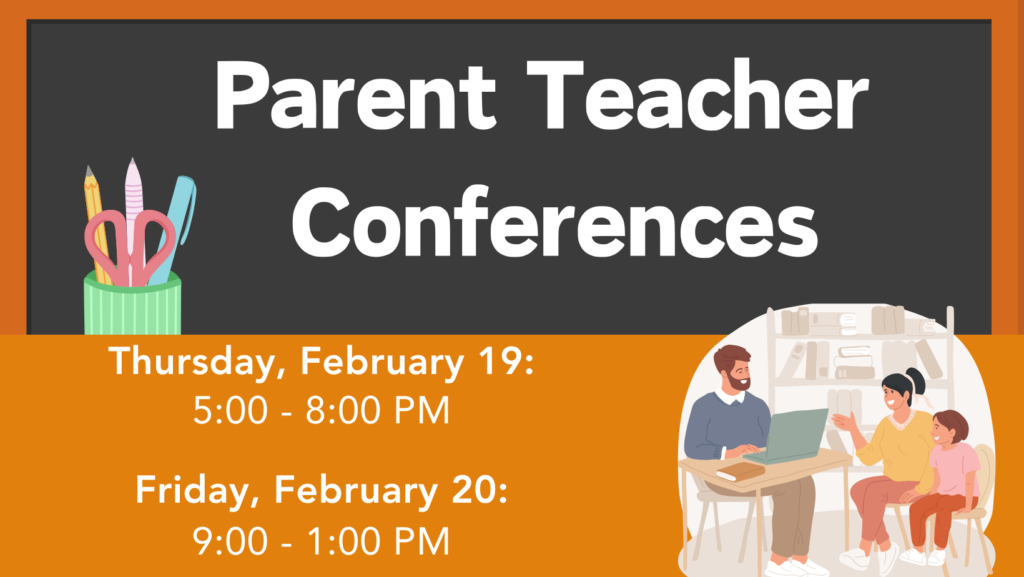 Our first Parent Teacher Conferences of the school year are being held on Thursday, February 19 from 5:00 PM – 8:00 PM and Friday, February 20 from 9:00 AM – 1:00 PM. You can have your meeting Virtually or In-Person. Read More …