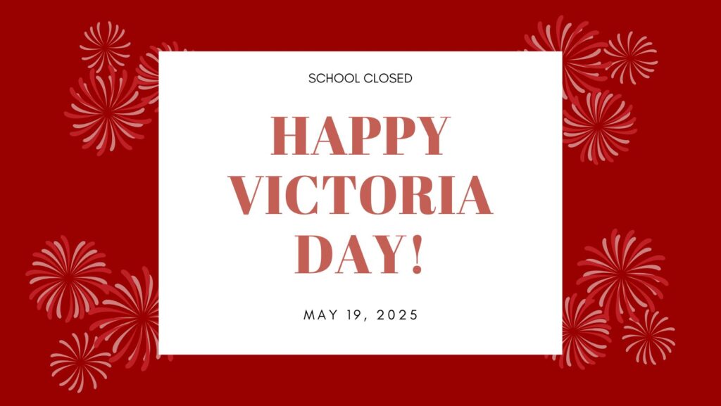Our school will be closed on Monday, May 19th for Victoria Day. We hope everyone has a wonderful long weekend!