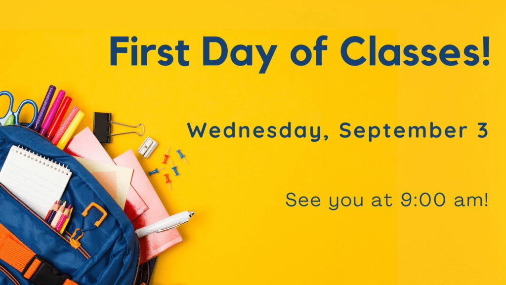 Our Student Orientation will be held on Tuesday, September 2 from 10:00 – 12:00pm. This is designed so that both new and returning students and their parents can see their classrooms, meet their teachers and classmates, and tour the school Read More …