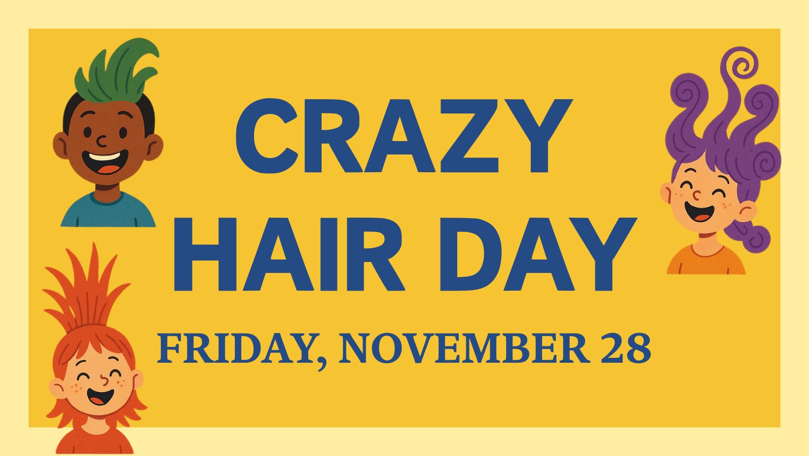 Students can ditch the uniform and show us their awesome hair creations this Friday for our Crazy Hair Day! Let’s see messy, funky, arty! The wackier the better!