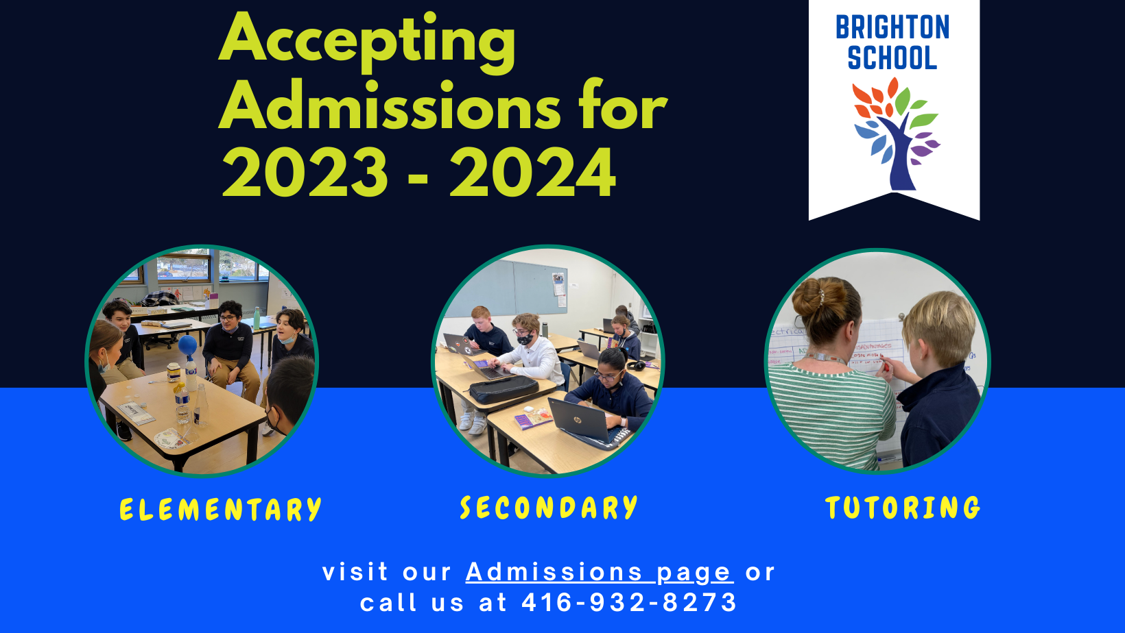 Register early for the next school year! If you are looking for information on enrollment for this school year, please visit our Admissions page by clicking here for more information, or you can call us directly at 416-932-8273. You can also attend one of our Open Houses by registering HERE.