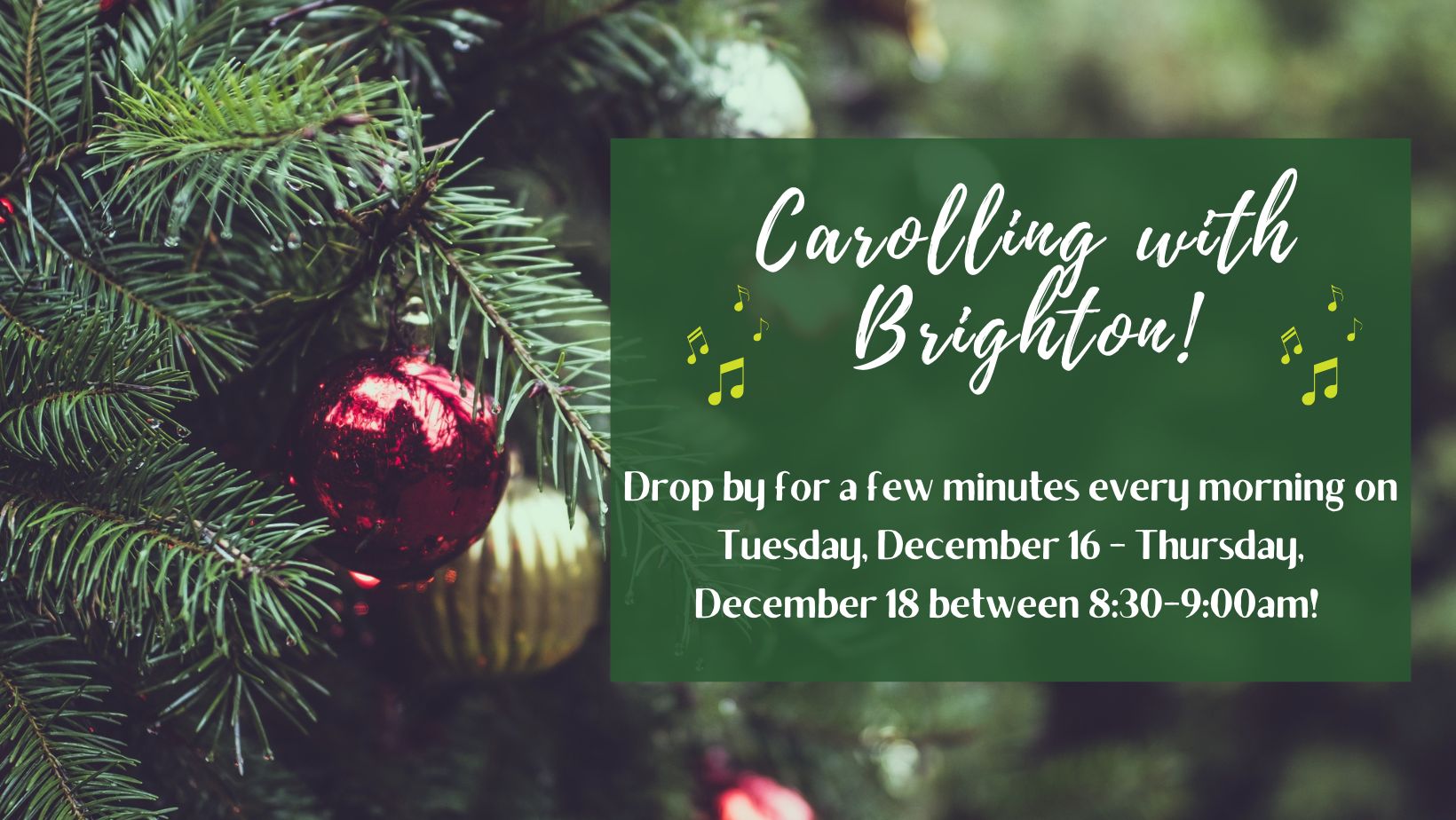 Time to get into the holiday spirit with some outdoor carolling! Drop by our North entrance courtyard for a few minutes every morning on Tuesday, December 16 – Thursday, December 18 between 8:30-9:00am for some carolling! We’ll provide the songbooks and the jingle bells!